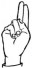 На ћирилици написано ОЛИВЕР ГОДОЧЕВИЋ састоји се из 15 слова [?]. Исписано ћириличном једноручном азбуком за глувонеме: